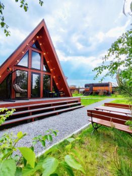 Наш треугольный дом рассчитан на семью или компанию до 6 человек. Не для шумных тусовок, а для спокойного семейного отдыха.