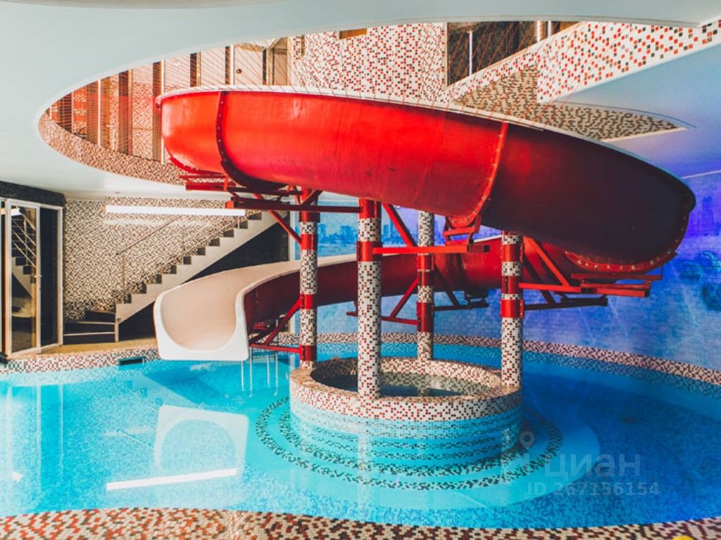 Первый этаж: банкетный зал 80м² совмещенный с зоной для барбекю 40м² на 25 человек; бильярдная комната с танцполом и, который оборудован высококачественными светомузыкой и отличной акустикой(900 Вт), есть караоке. Зона отдыха - настоящее развлечение для Вас и Ваших гостей! Большой теплый бассейн с джакузи в любое время года (100м²) сделан восьмеркой часть которого находится в доме, часть на улице и самое интересное ВОДНАЯ ГОРКА со второго этажа 8 метров, как в настоящем аквапарке, а в центре горки - тёплое джакузи!