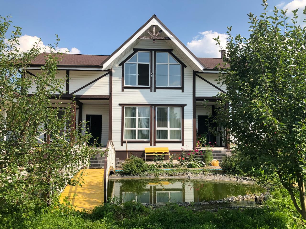 Два выхода во двор. Один со стороны парковки, другой на пруд и беседку.