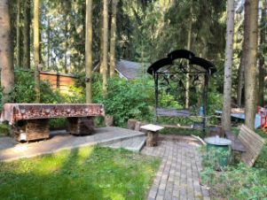 За баней есть открытая беседка! В летний период там можно попить чай из самовара!