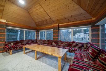 2 этаж: спальня (двуспальная кровать)+ выход на балкон, спальня ( 2 полуторные кровати), спальня (полуторная кровать), комната отдыха ( 2 раскладных дивана), с/у+ванна