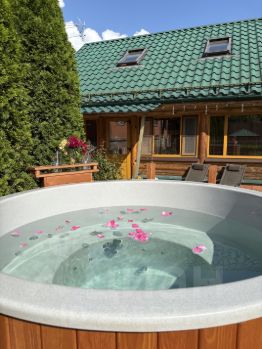 Сдаю 2-х этажный уютный домик с бассейном, с подогреваемым чаном с подсветкой и гидромассажем и сауной!