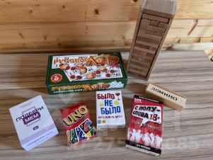 Второй этаж- большая комната с двумя двуспальными диванами, тв, кондиционер, настольные игры.