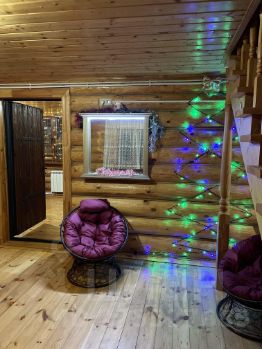 Сауна с парной и со всеми банными принадлежностями, масла, простыни. Комната для отдыха, распития чая)