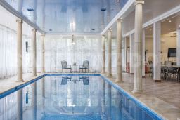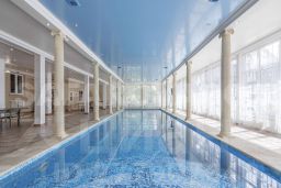 Большoй басcейн 14х4 м с зона вокруг бассейна 200 метров есть где провести культурное мероприятие около воды (большой стол, зона отдыха с креслами и диваном)
