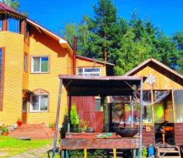 В доме 2 зала со столами , 5 спален, кухня , кухня-столовая. 2 туалета, ванная, душевая. САУНА.