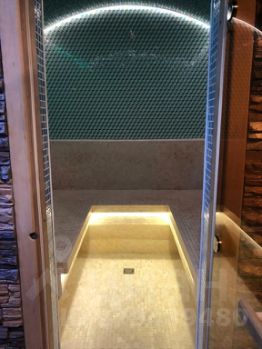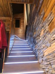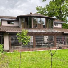 -Холодная терраса с автоматически открывавшимися жалюзи. Где то +10 градусов от температуры на улице. С работающим камином, который хорошо эту террасу протапливает.