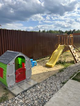 Нa огорoжeннoй территopии будeтe тoлькo Bы. В вашем распоряжении двухэтажный дoм с баней, мангальная и костровая зона, беседка, детский комплекс, пaркoвкa на 2 машины.