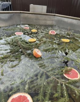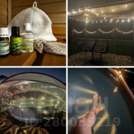 Внутри дома баня за доп плату 3 часа=3000₽. Есть ведро для запаривания веников, банные шапки. Также можно приобрести веник, халаты, масла.