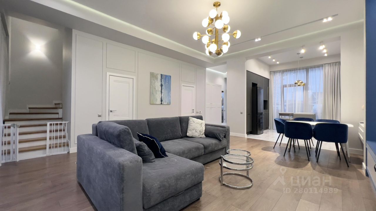 Предлагается в аренду таунхаус в ЖК "Футуро Парк", площадью 169 кв.м, укомплектован всей необходимой бытовой техникой и мебелью. 2 этажа, эксплуатируемая кровля, открытая терраса с участком. Придомовой участок благоустроен, высажены деревья. Перед таунхаусом паркинг на 2 авто. В распоряжении жителей находится вся инфраструктура и зоны отдыха близлежащих поселков Villagio Estate.