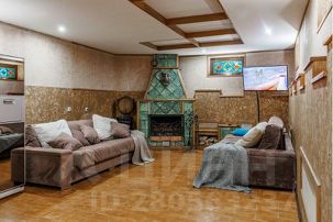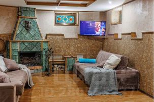 В цоколе диваны, второй холодильник, ТВ, музыка, действующий камин.