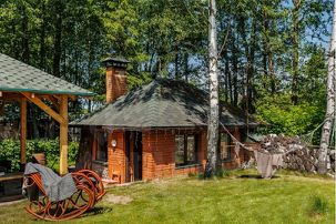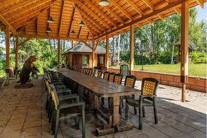Рядом с домом располагается отдельная беседка со встроенным мангалом вместимостью до 50 человек!! качели, уличный обеденный стол, лавочки, гамаки.