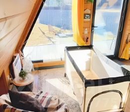Сдаётся уютный дом в стиле А-фрейм, расположенный в закрытом коттеджном поселке и оборудованный всем необходимым для комфортного отдыха.