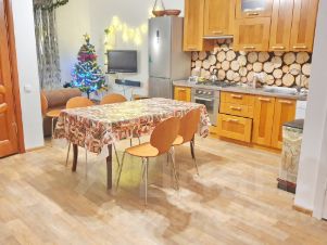 В доме 4 ОТДЕЛЬНЫХ СПАЛЬНИ с двухспальными кроватями, два санузла, сауна, кухня с посудомоечной машиной, холодильник, свч, духовой шкаф, плита, саундбар с караоке, тв, стиральная машина,фен, утюг, гладильная доска.