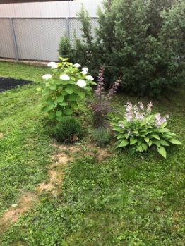 Из плодовых деревьев: 3 сорта яблони, 2 сорта черешни, а также черная смородина, малина, жимолость, облепиха.