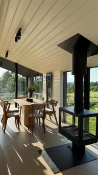 Каждый уголок дома создан для комфорта и уединения. Здесь можно сменить обстановку, вдохновиться природой и насладиться тишиной. Современный интерьер и панорамные окна добавляют уюта и света.