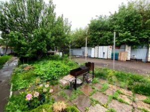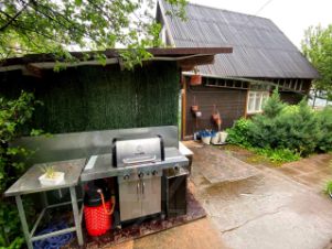 На участке есть площадка с мангалом.