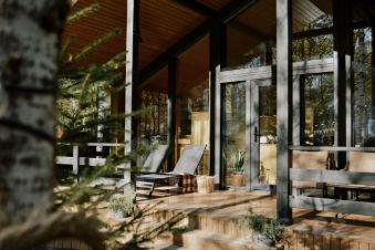 Барнхаус с сауной и камином (сауна включена в стоимость проживания) дом с панорамными окнами в охраняемом коттеджном посёлке на границе с Приокско-Террасным заповедником. Из дома и террасы открывается чудесный вид на березовую рощу.