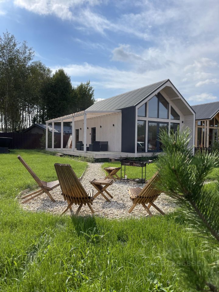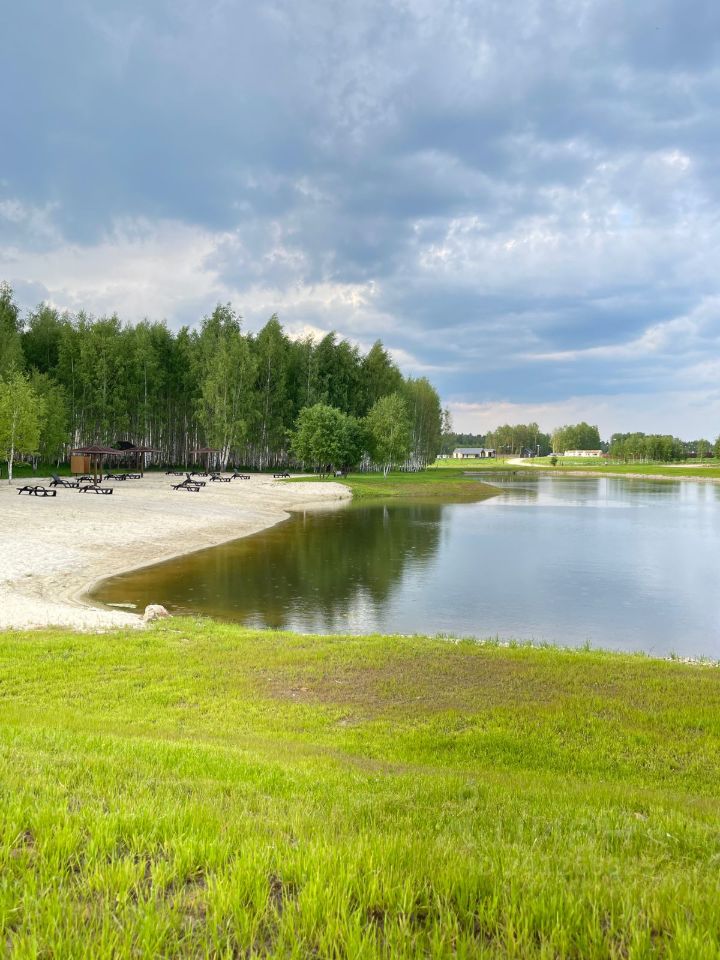 Уютный дом для тихого семейного отдыха с сауной и горячим чаном в коттеджном посёлке бизнес-класса с оборудованными площадками, прудом с шезлонгами и беседками.