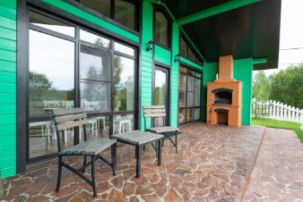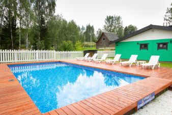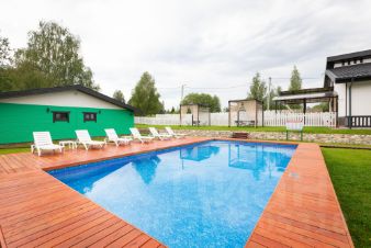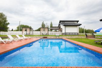 На территории загородного клуба находится 2 одноэтажных дома, баня и дуплекс и открытый бассейн с подогревом.
