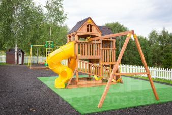 Детская площадка, батут, качели, стол для настольного тенниса, площадка для бадминтона.