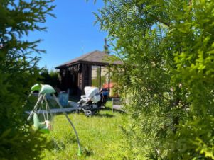 На территории подсветка и построен отдельный летний дом-беседка с полноценной печью.