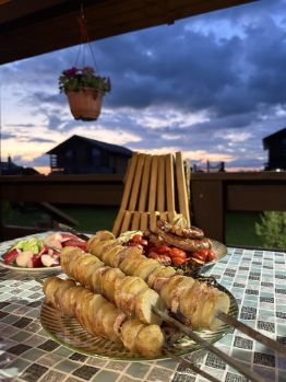 - Электрическая плита, микроволновая печь, чайник,посудомоечная машинка ,большой холодильник, шампура, казан, и все необходимое на кухне.