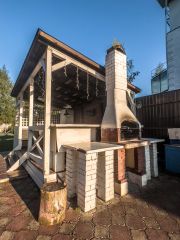 Второй этаж: Каминный зал с диваном, кухня, спальня с двуспальной кроватью, сан. узел, терраса с мангалом, настольный футбол.