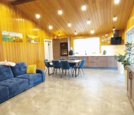 Светлая гостиная и кухня - единое целое. На кухне вы найдёте абсолютно всё: варочная поверхность, духовка, посудомоечная машина, кофемашина, электрический чайник, холодильник, микроволновка, посуда и столовые принадлежности.