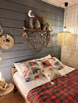Домик идеален для пары, с дровяным камином, виниловым проигрывателем и кино проектором! Теплый банный чан фурако и баня на дровах за дополнительную плату. Приглашаем вас в наш домик Балтик, на создание которого нас вдохновил свежий морской бриз Балтийского побережья с его суровой натуральной красотой и завораживающие своим уютом, теплые интерьеры в стиле бохо сканди. В доме одна спальня и гостиная с кухней, обеденной зоной, камином, удобным раскладным диваном, телевизором и кинопроектором с установленными онлайн-кинотеатрами . Вы сможете смотреть любимые фильмы или сериалы на большом экране, сидя ( или лежа;) на удобном диване и греясь у живого огня камина. В домике вас также порадует множество атмосферных аксессуаров, привезенных нами со всего света, мебель ручной работы, репродукции картин и фото современных художников, авторская керамика и натуральное постельное белье. Мы оборудовали зону для приготовления шашлыка, с мангалом, шампурами и решеткой. Угли и розжиг гости привозят с собой. Домики эко проекта Dacha Inn Les расположены в престижном коттеджном поселке, в 33 км от Москвы. До нас легко добраться на собственном авто, каршеринге или такси. Территория поселка полностью закрытая, для въезда мы закажем вам пропуск. Для гостей оборудовано парковочное место. Быстрая доставка продуктов: ВкусВилл, Озонфреш, Яндекс Доставка готовой еды из ближайших ресторанов : Якитория, Моремания, Пиццерия, Бургерная и крафтовая пивоварня, Блюда на углях, огромный список Яндекс Деливери. Дом Балтик находится на одном большом участке и расположен в непосредственной близости с нашим собственным домом, но мы предусмотрели зонирование пространства таким образом, чтобы ни что не мешало вашему уединению. Базовая цена указывается на проживание для двоих гостей в будни с максимальной скидкой. Дополнительный гость 1000 рублей в день. Для отображения точной стоимости при бронировании указывайте пожалуйста точное количество гостей! Возможно проживание с концепцией Spa All Inclusive с доплатой 12000 рублей в день (в стоимость проживания включено пользование горячим банным чаном фурако на дровах, баня-сауна на дровах - топите самостоятельно, халаты, тапочки, шапки для бани) данное увеличение стоимости проживания учитывается при составлении договора найма жилого дома Очень воспитанная и очень маленькая собачка ( до 30 см) - 2000 рублей за все время проживания Максимальное количество гостей в доме - 4 человека, включая детей Наши правила: Мы не берем доплату за стандартную уборку, но просим гостей бережно относиться к дому, оставлять общий порядок и мыть за собой посуду. Наш эко-проект Dacha Inn Les - это территория тишины, запрещена громкая музыка в течение дня, после 22.00 на улице режим абсолютной тишины. Наши дома не подойдут для проведения вечеринок, девичников и мальчишников. Залог за сохранность имущества и соблюдение правил проживания 5000 рублей.
