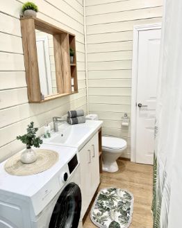 В доме 2 сан узла с душевой и ванной, 2 просторные спальни с большими кроватями 160х200 с ортопедическими матрацами.