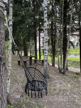 Детская площадка, батут, качели, стол для настольного тенниса, площадка для бадминтона.