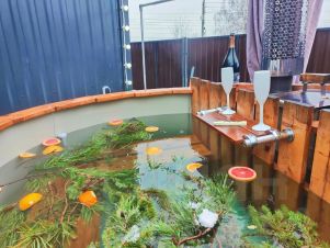Горячая купель фурако 38-42 градусов, 1-й день 4500 р., топка на каждый последующий день без смены воды + 1500 р.