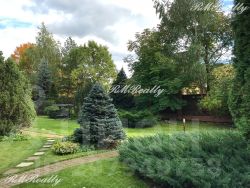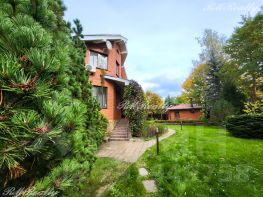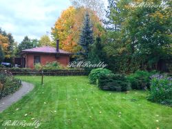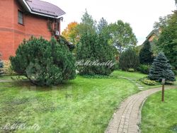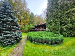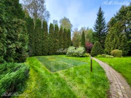Просторный участок в 25 соток с ландшафтным дизайном примыкает к лесному массиву, есть калитка для выхода в лес.