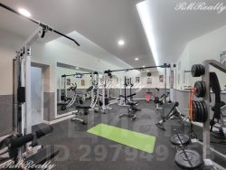 - Цокольный этаж: тренажёрный зал (с сауной, душем, санузлом), постирочная, котельная;