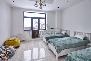 В ДОМЕ: 7 спален, 41 спальное место. Все комнаты оборудованы сплит-системой и вентиляцией. Конференц-зал 105 кв.м. на 80 персон со сценой и проектором. Вода из артезианской скважины и своя система очистки воды. Зал гостиная с большими арочными окнами.