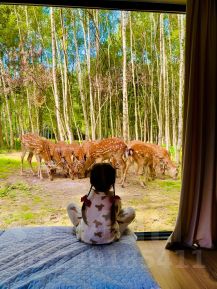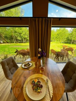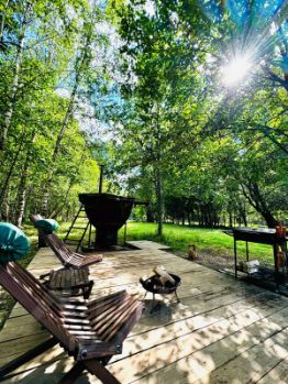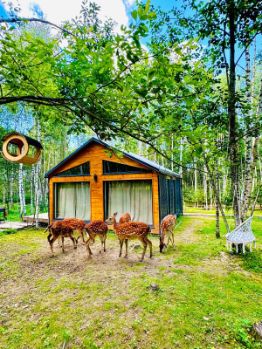 Домик с банным чаном в заповедном лесу с оленями и кроликами.