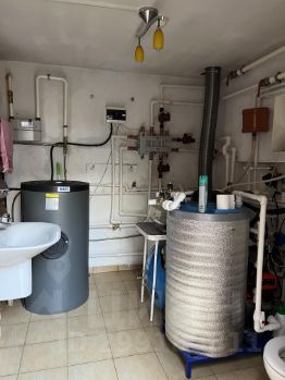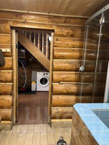 Дом из бревна с баней на дровах внутри и купелью, отопление газовое,