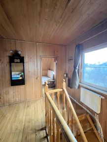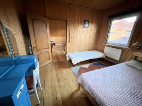 На втором этаже - одна спальня с двухспальной кроватью и односпальной раскладной кушеткой, вторая с двуспальной кроватью и раскладушкой. Третья комната проходная с бильярдом и раскладным диваном (2 спальных места).
