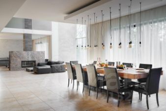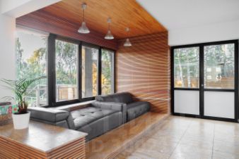 Модный современный дом в эко стиле. Панорамные окна, дерево, мрамор. Большой участок 30 соток. Мангальная зона, где может разместиться до 20 человек. Терраса с уличной мебелью.
