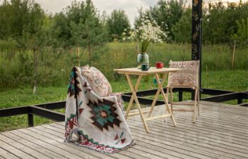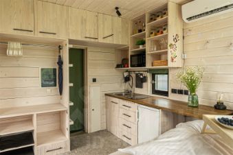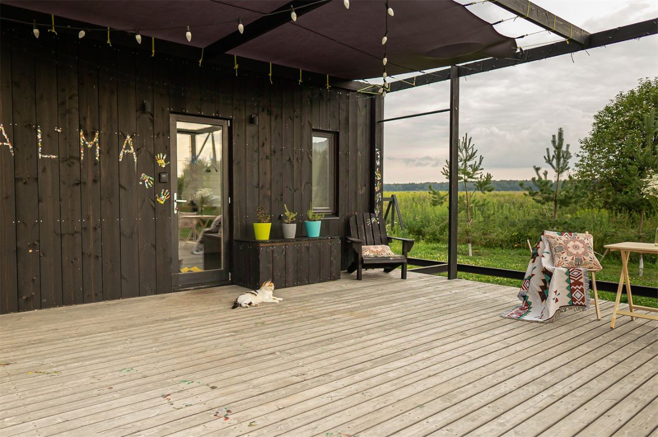 Дом площадью 15 кв. с большим окном с видом на поле. Сама деревня очень тихая, а наш дом расположен на ее окраине. Бескрайний вид на поле создаст вам чувство единения с природой и поможет отдохнуть от городского шума! Это место отлично подойдет для восстановления внутренних ресурсов, где можно погрузиться в свои мысли.. Или уединиться в удобном кресле за работой на свежем воздухе.