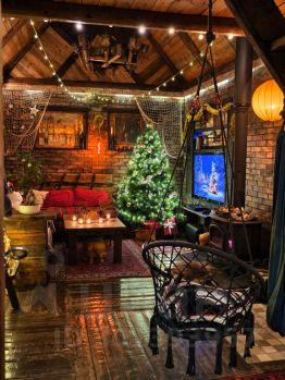 Замерзли сидеть на улице, заходим в дом, греемся у дровяного камина или в уютной атмосферной сауне. Показываем всем свои превосходные) вокальные данные! В гостиной, оснащенной системой караоке с большим 65 дюймовым телевизором, на котором можно посмотреть любимые фильмы и сериалы (бесплатный просмотр любого контента). Поиграть в любимые игры на приставке sony playstation.
