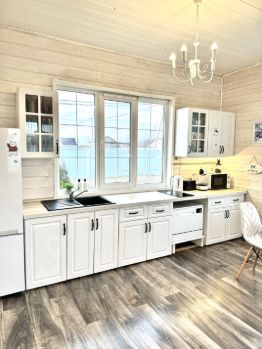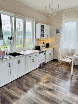 В доме для Вашего удобства большая кухня-гостиная 20 м, полностью оборудованная большая кухня (холодильник, мойка, индукционная плита, ПММ, чайник, тостер, СВЧ, кофемашина).