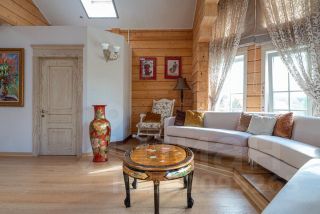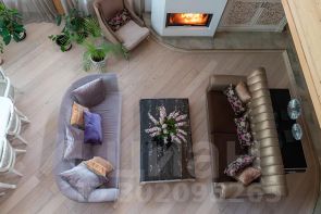 - Общая светлая зона с полукруглым диваном и большим пространством с видом на второй свет, где можно посвятить время увлечениям - рисование, вышивка, совместный семейный досуг.