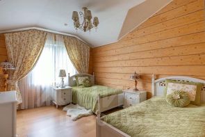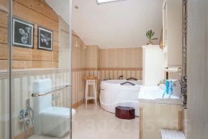 - Изолированный отсек мастер-спальни с выходом на балкон с видом на сосны. В отсеке свой санузел с джакузи и душевой кабиной, собственная гардеробная.