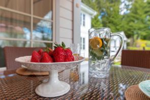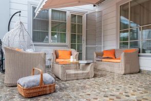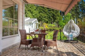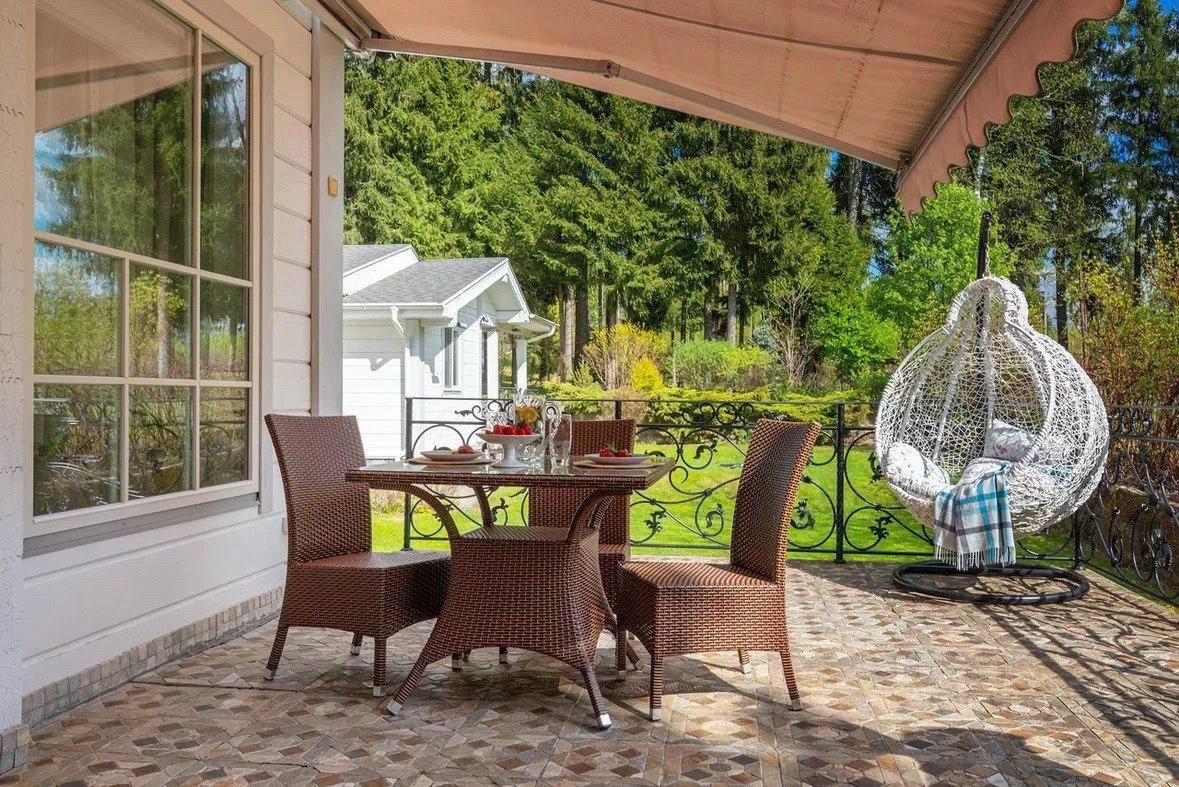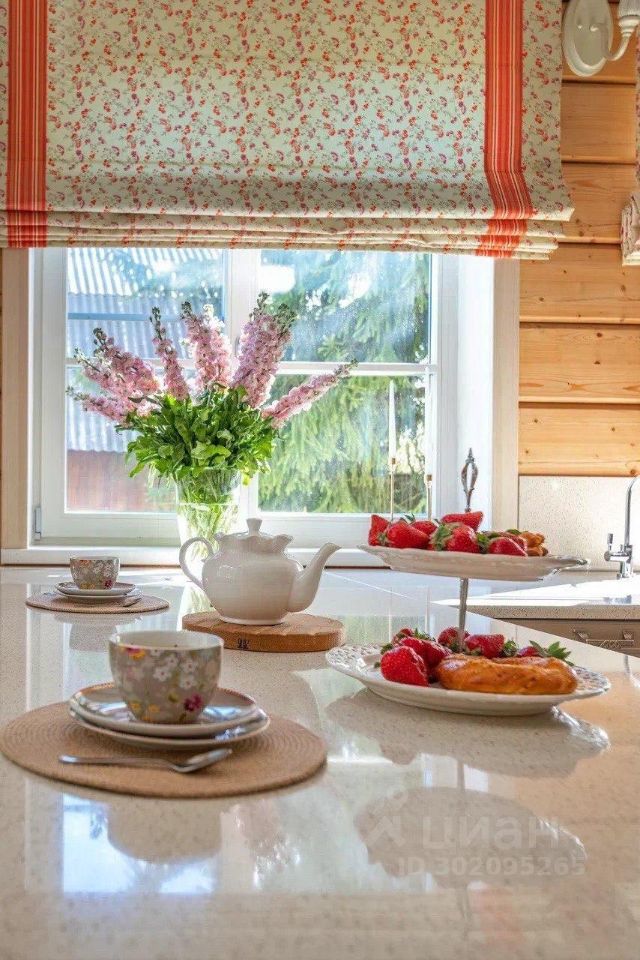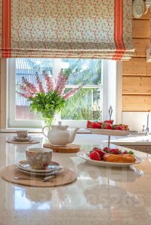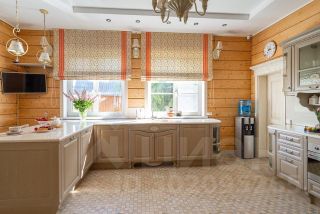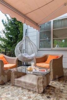 - Светлая и просторная кухня с полуостровом для завтрака и рабочей зоной с окнами в сад. Из кухни выход на просторную террасу , где можно позавтракать под лучами утреннего солнца (если солнце слишком активное, то терраса оборудована удобным выдвижным навесом) , поужинать под пение птиц, а также просто отдохнуть семьей или с друзьями