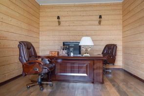- Роскошный кабинет со статусным рабочим столом и кожаными креслами