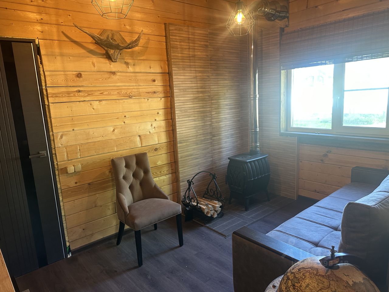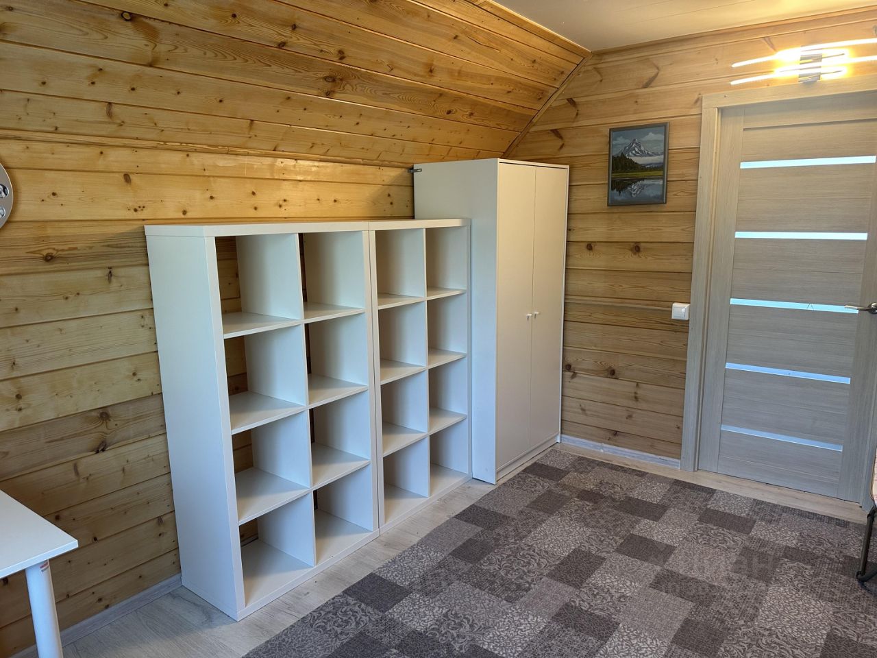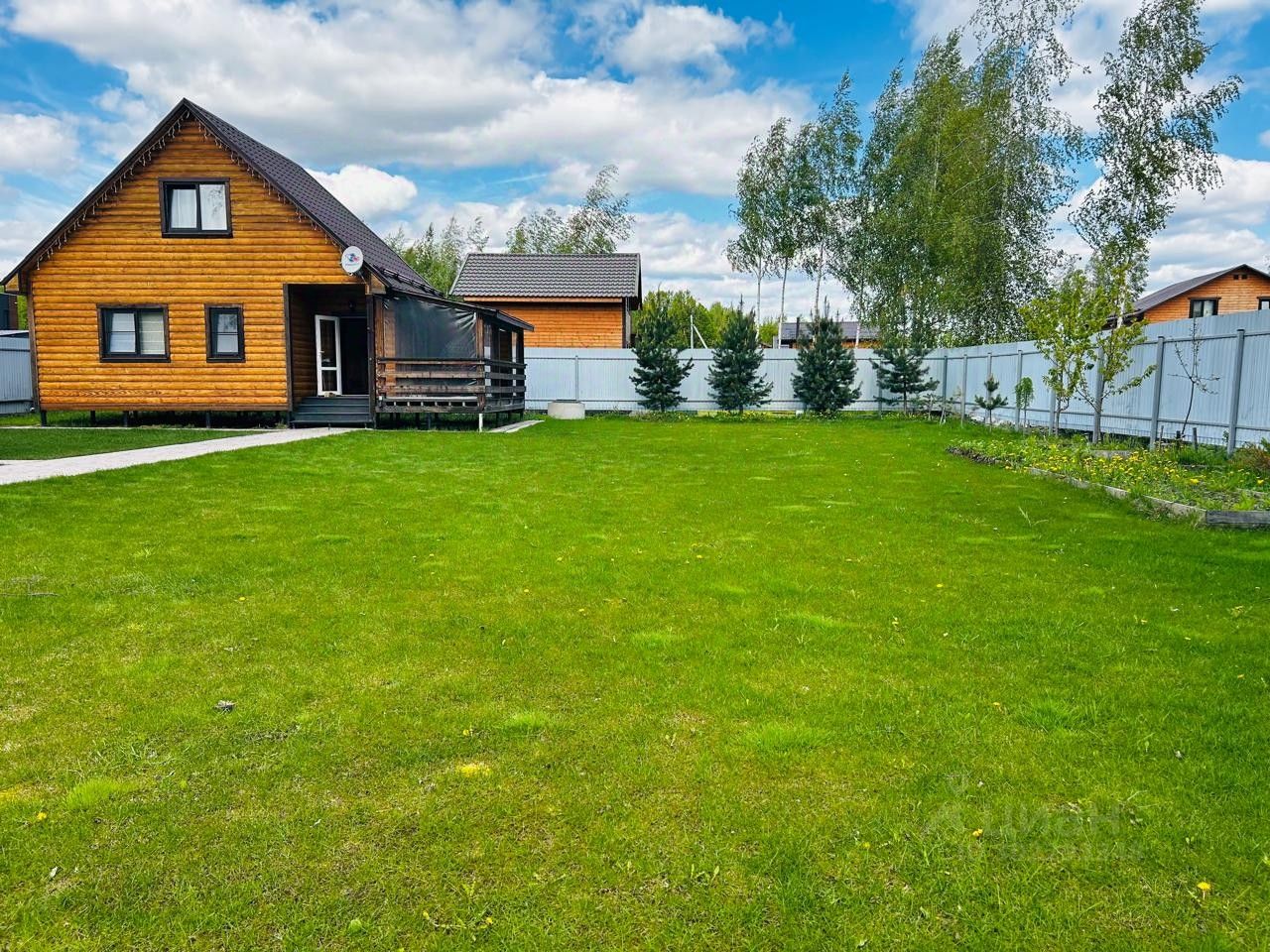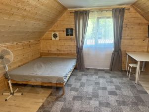 2 спальни, кухня - гостиная. Все коммуникации. Отдельностоящая баня, можно использовать как дополнительную спальню или гостевой дом. Участок облагорожен, ухоженный газон, плодовые кусты, деревья, клубника. Мангал. Машиноместо на 2 машины. Коттеджный поселок закрытый, на территории есть пруд и детская площадка. Можно с животными. Без комиссии.