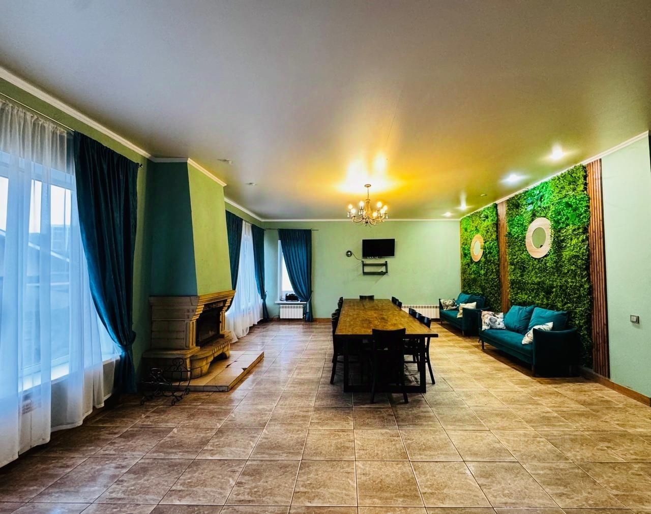 Собственник сдает в посуточную аренду коттедж в 15 минутах от метро Новомосковская. Площадь коттеджа 420 кв.м., участок 13 соток. Возле коттеджа парковка на 8 авто (большее количество автомобилей размещаются на гостевой парковке) . В доме 2 этажа , бильярдная в цоколе , баня. На 1 этаже просторная гостиная (55 кв.м) с обеденными столами (до 20 посадочных мест) , тв и музыкальной системой и КАМИНОМ, и две комнаты , при необходимости их можно использовать как спальни, санузел с душевой кабиной , кухня с бытовой техникой и посудой , выход на террасу и к мангальной зоне (два мангала , беседка). На 2 этаже расположена гостиная 65 кв.м, может использоваться как банкетный зал или танцевальный . Так же на 2 этаже расположен второй санузел , три спальни с двухспальными кроватями и раскладным диваном в каждой , баня. Всего в доме 6 стационарных спальных мест (двухспальные кровати) и 12 дополнительных (диваны). В стоимость аренды входит все необходимое для полноценного отдыха : постельное белье, полотенца, посуда (по количества гостей в брони), бильярд, тв, музыкальная система, мангальные принадлежности (решетки , шампура, мангалы).