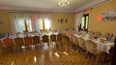 В коттедже оказывают услуги организация банкетов, свадеб под ключ, кухня с прекрасным выбором блюд.